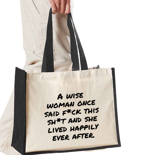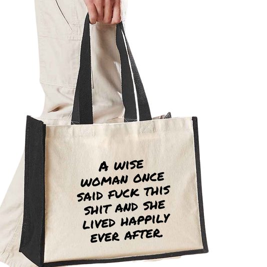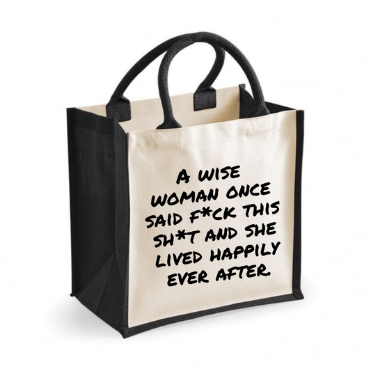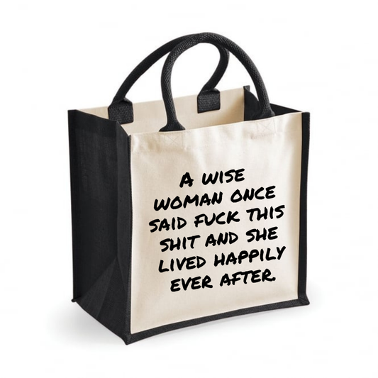 A wise woman once said fuck this shit, and she lived happily ever after! - Midi Jute Tote Bag