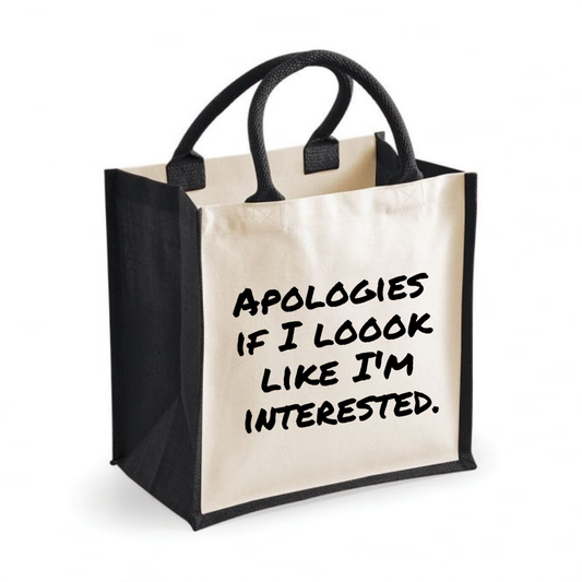 Apologies if I look like I'm interested - Midi Jute Tote Bag