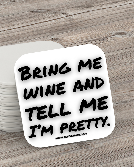 Bring Me Wine And Tell Me I'm Pretty - Square Coaster