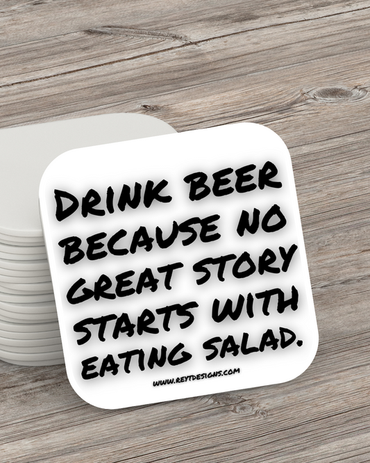 Drink Beer Because No Great Story Starts With Eating Salad - Square Coaster