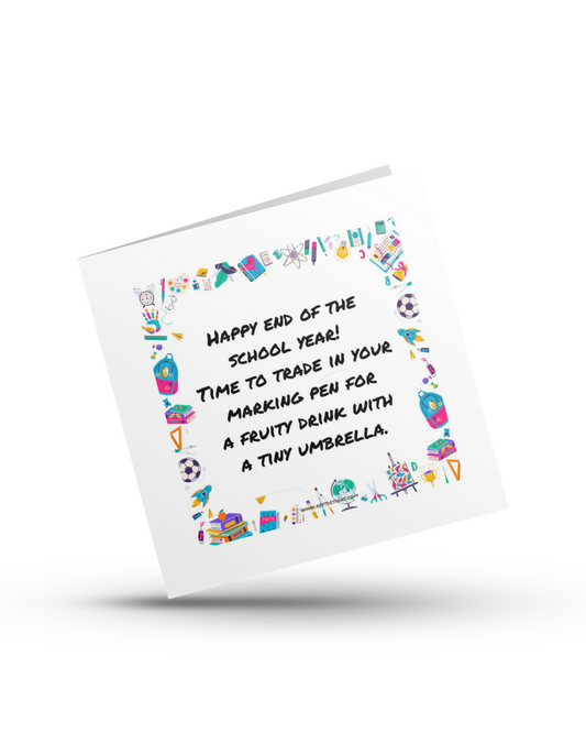 Happy end of the school year! Time to trade in your marking pen for a fruity drink with a tiny umbrella! - Teachers Greeting Card