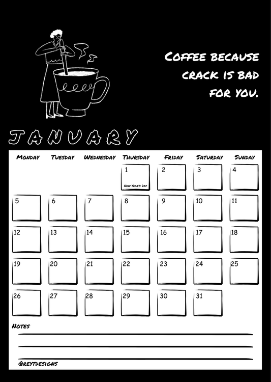 2026 Wall Calendar with Coffee Quotes and Doodles