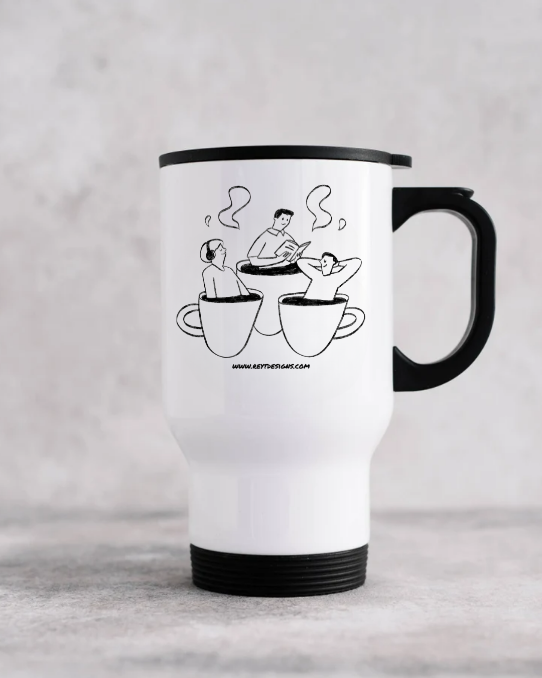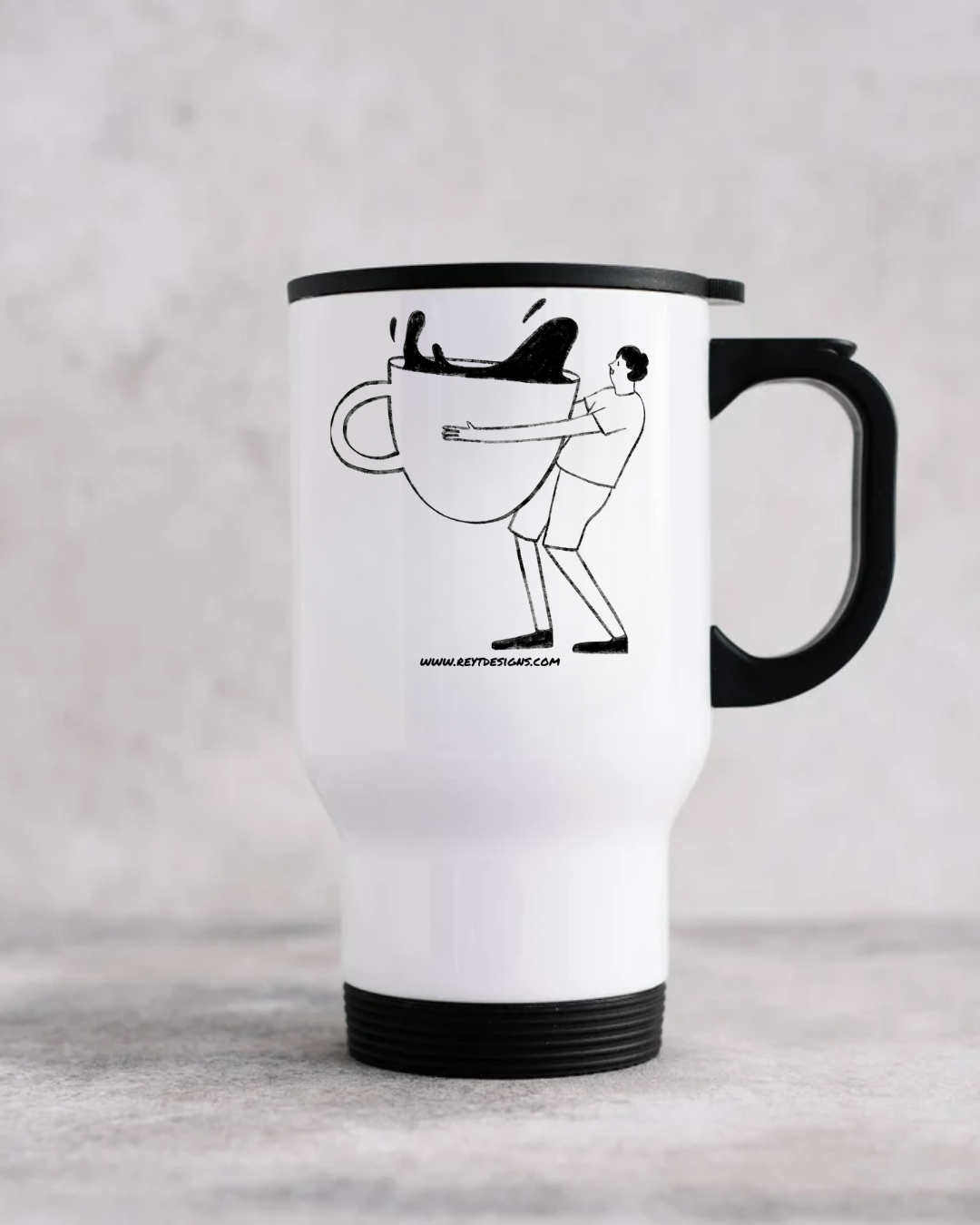 14 oz stainless steel travel mug with sublimated design (waterproof).