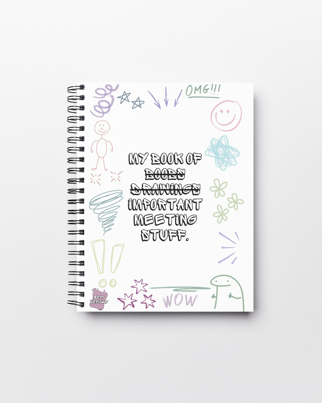 “My Book of Boobs Drawings & Important Meeting Stuff.”