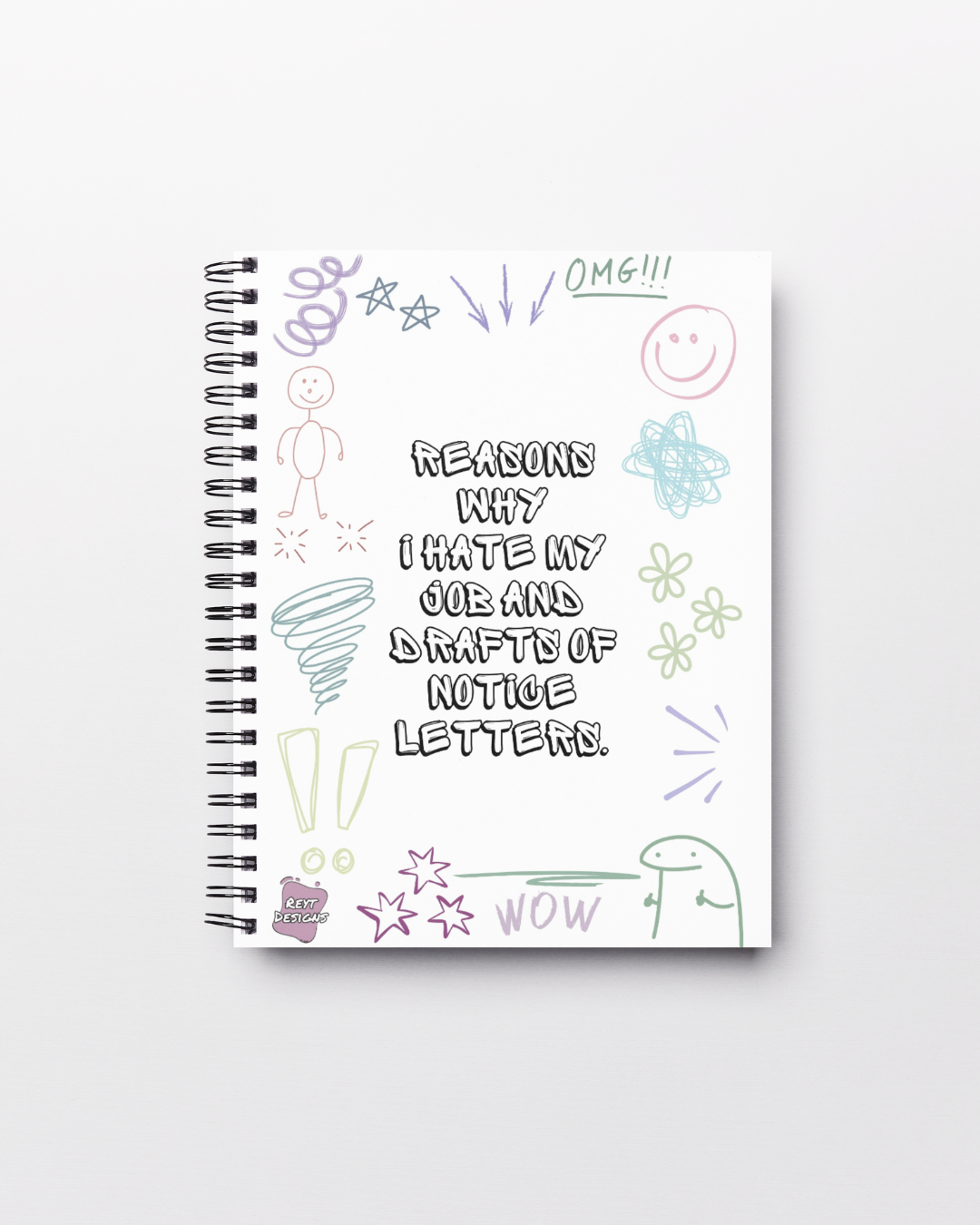 Packed with pastel doodles (the ones we scribble when stuck in boring meetings) and a bold graffiti-style font, it’s perfect for venting, brainstorming escape plans, or simply surviving the office with a sense of humour.